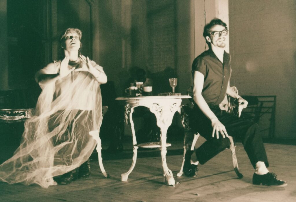 Produced in an empty art gallery lined with windows, looking west across the expanse of the city, with L trains, passing in the near distance, the company used all the detritus from their past in their storage to create Jean Anouilh’s retelling of the classic myth of love and loss.