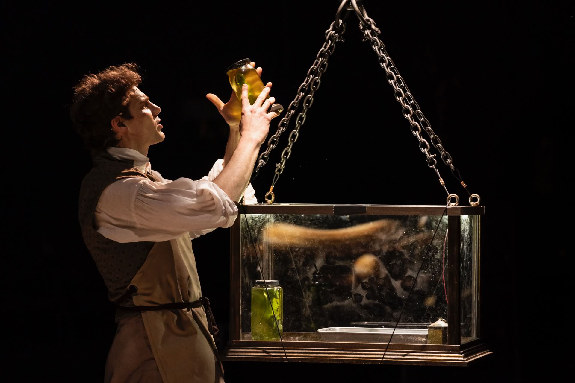 A visceral reimagining of Shelley’s novel exploring creation, responsibility, and the monstrous consequences of pursuit. The production blends physical theater with probing moral questions.