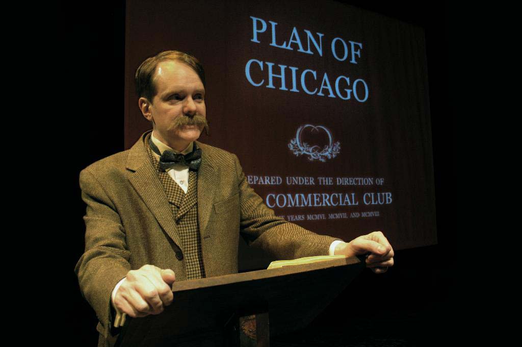 Lookingglass Ensemble Member Raymond Fox plays Daniel Burnham, who must win over a skeptical audience with a turn-of-the-century PowerPoint presentation using “magic lantern slides” paired with the enthusiastic belief that Chicago is destined for greatness. Musial’s staging brings to life the genius in Burnham’s project while visually linking his plan with today’s Chicago through both authentic original slides and modern-day photography.